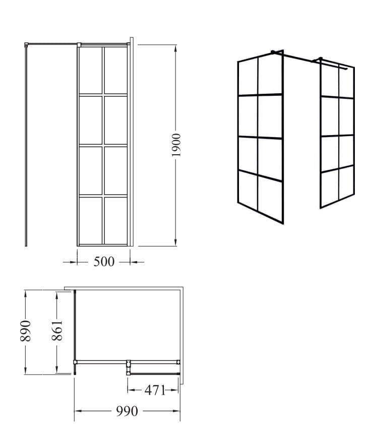 Kabina Besco Excea Walk In czarna 100x90 cm