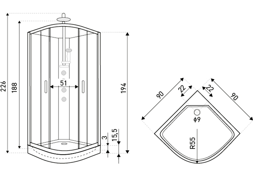 Model Wega łączy estetykę z komfortem użytkowania – wyposażony jest w deszczownicę, słuchawkę prysznicową, baterię mieszaczową oraz dysze do hydromasażu, które wspierają codzienny relaks. Przesuwne drzwi i chromowane profile nadają konstrukcji nowoczesny, lekki wygląd, który pasuje do wnętrz w stylu minimalistycznym, industrialnym czy klasycznym.