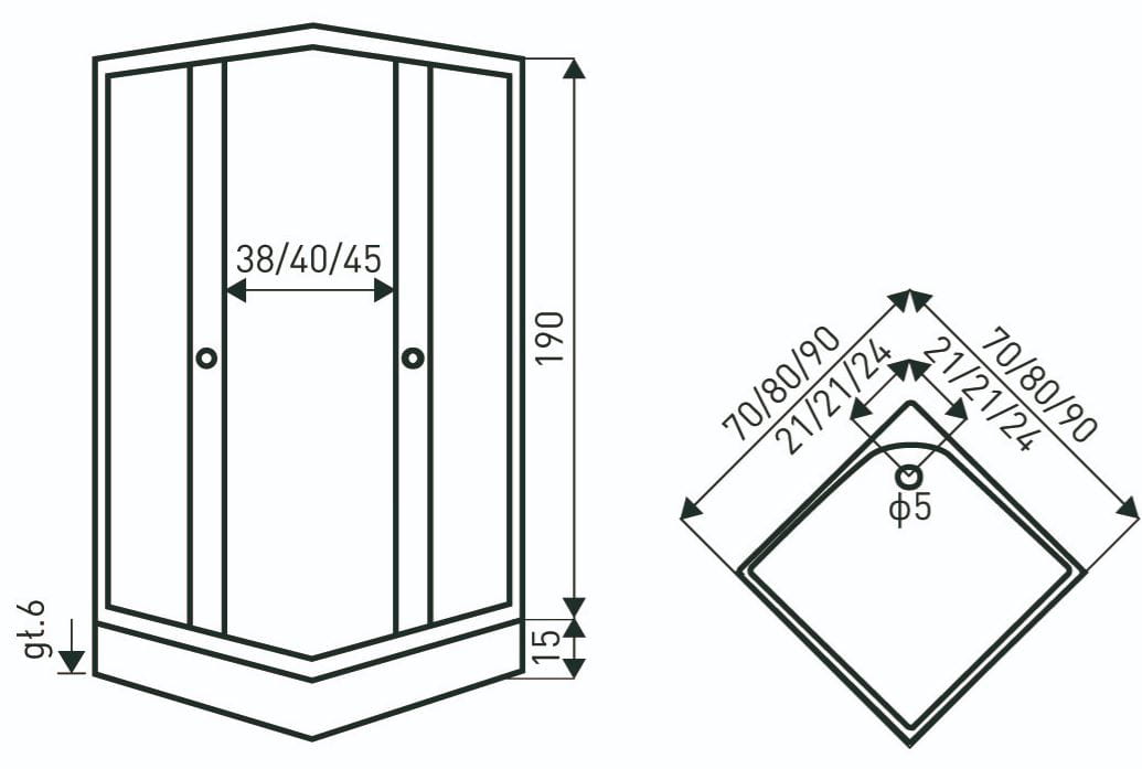 - wysokość bez brodzika: 190 cm