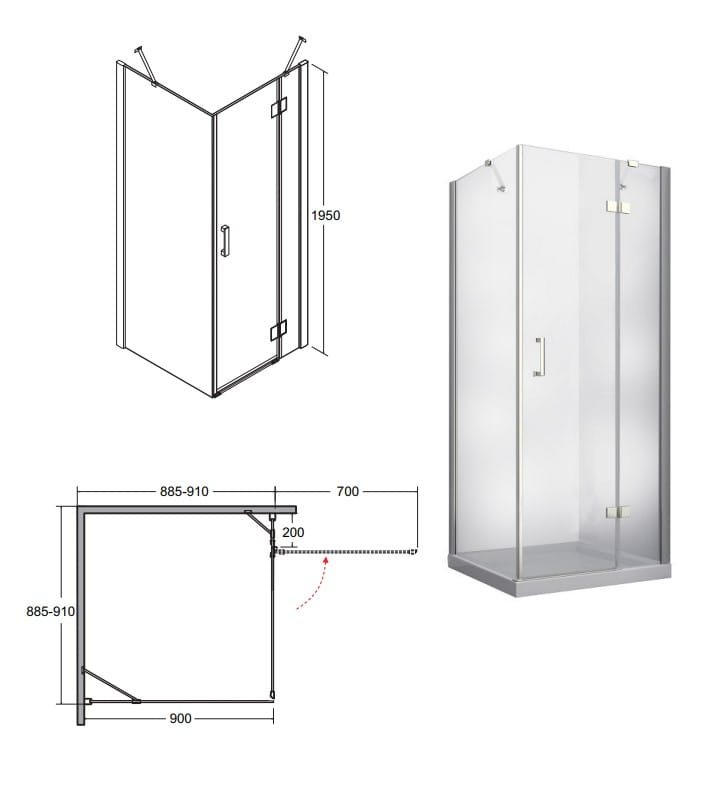 Kabina prysznicowa Besco Viva kwadratowa 90x90x195 prawa - dodatkowo 5% RABATU na kod BESCO5