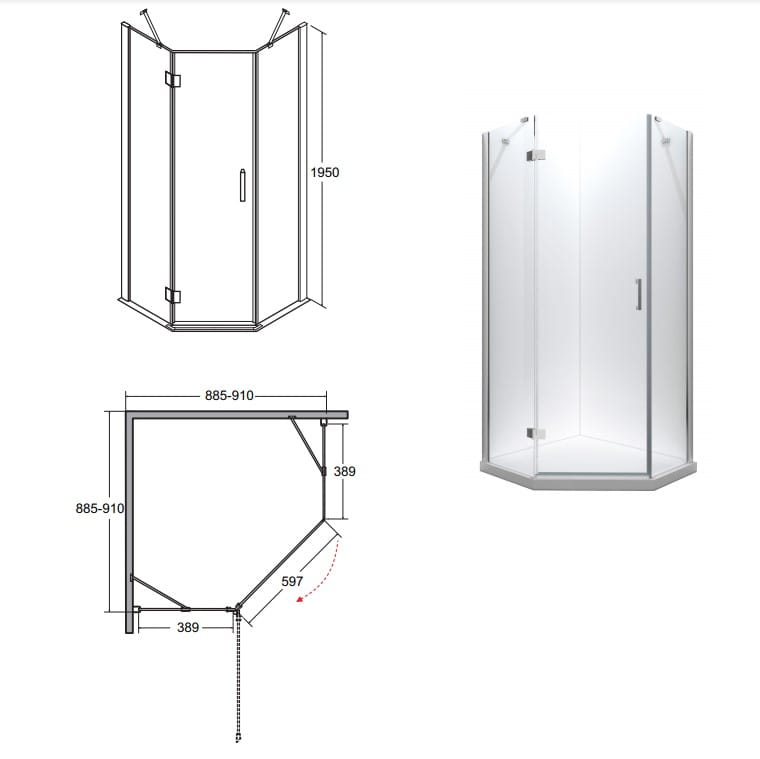 Viva 90 x 90 x 195: 885 - 910 mm / stronę - Magnetyczna uszczelka w drzwiach