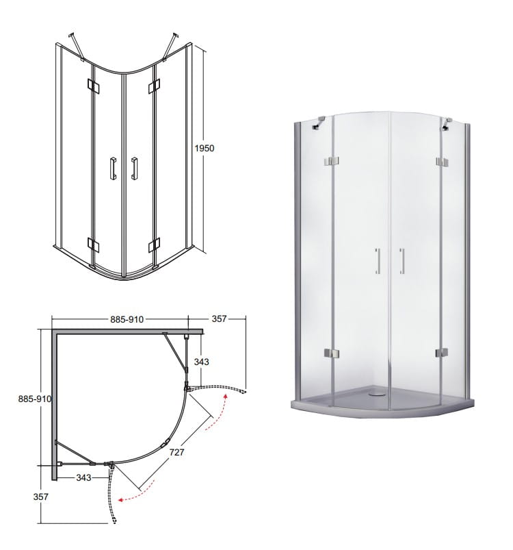Viva 90 x 90 x 195: 885 - 910 mm / stronę - Magnetyczna uszczelka w drzwiach