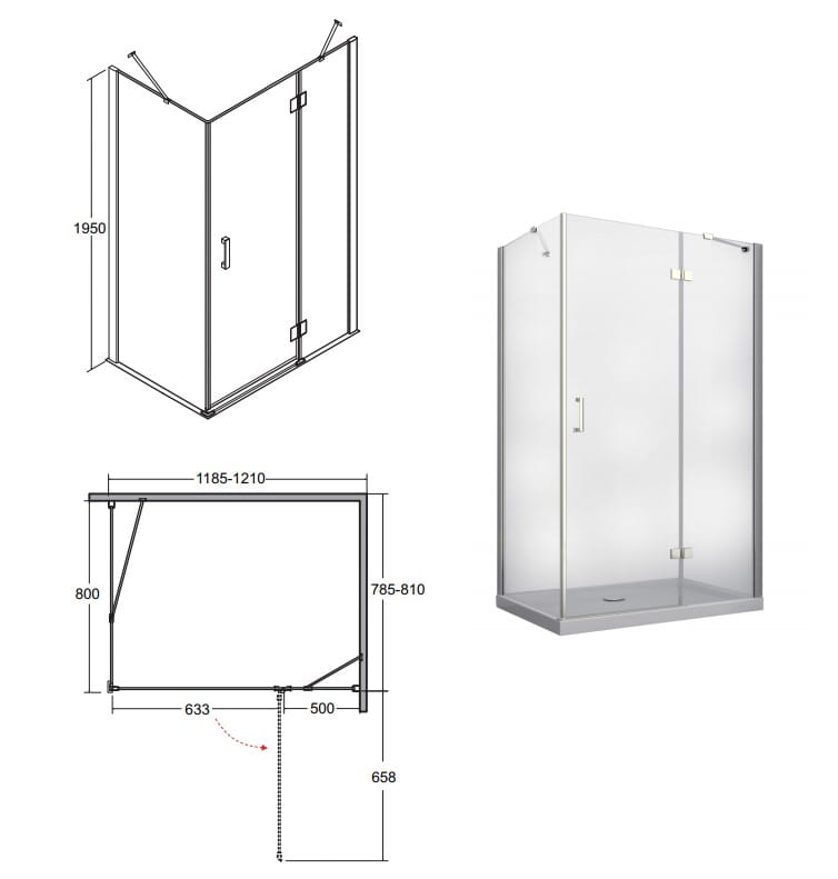 Viva 120 x 80 x 195: 118.5-121 cm / 78.5- 81 cm - Magnetyczna uszczelka w drzwiach