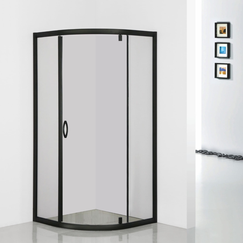 Kabina prysznicowa jednoskrzydłowa czarna półokrągła szkło przezroczyste