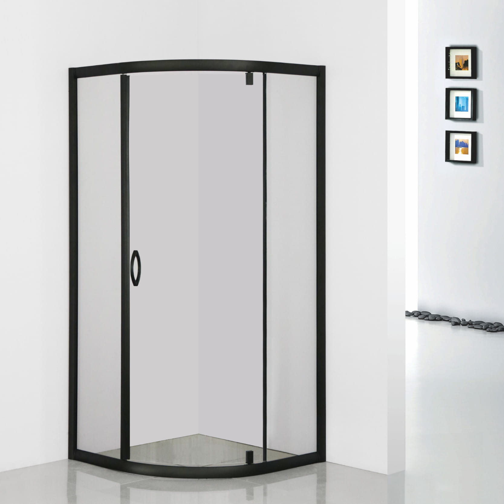 Kabina prysznicowa czarna półokrągła jednoskrzydłowa Sea-Horse Stylio 90x90x190 - szkło przezroczyste