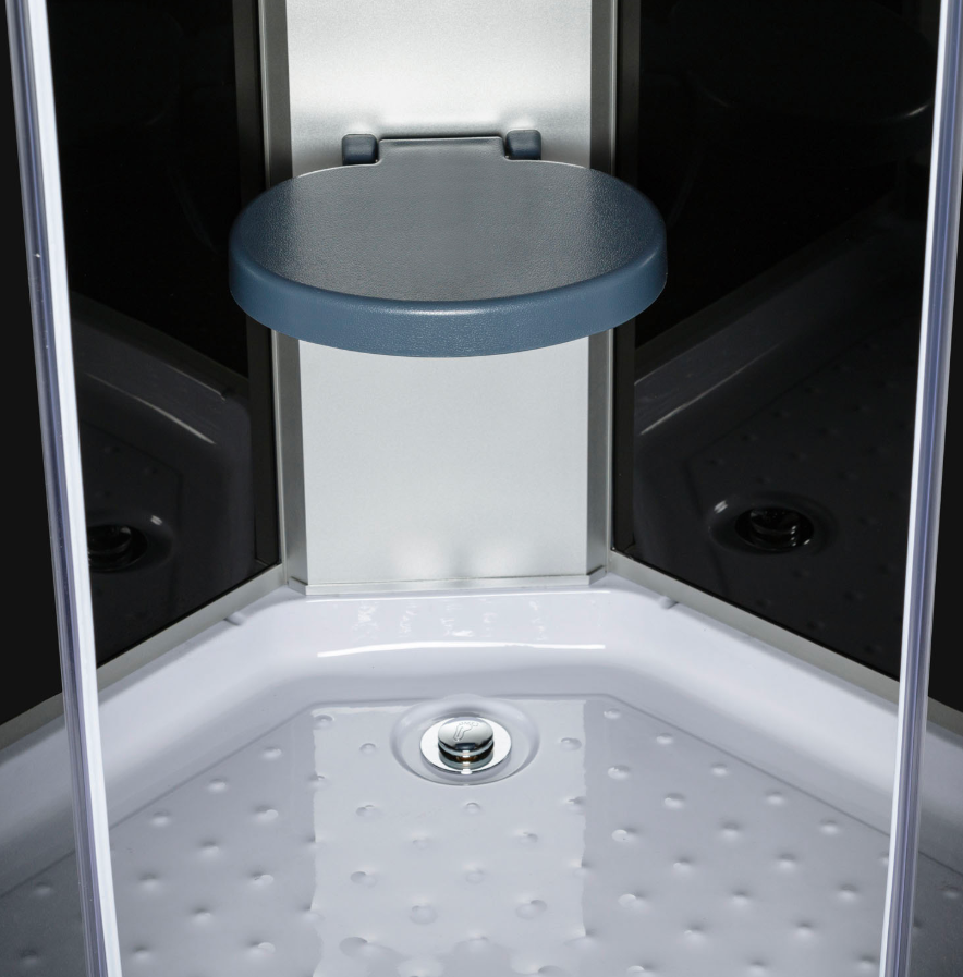 - Wyposażenie: składane siedzisko, bateria mieszaczowa, zestaw natryskowy