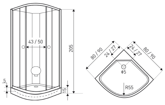 - Wymiary: 80 x 80 x 205 cm