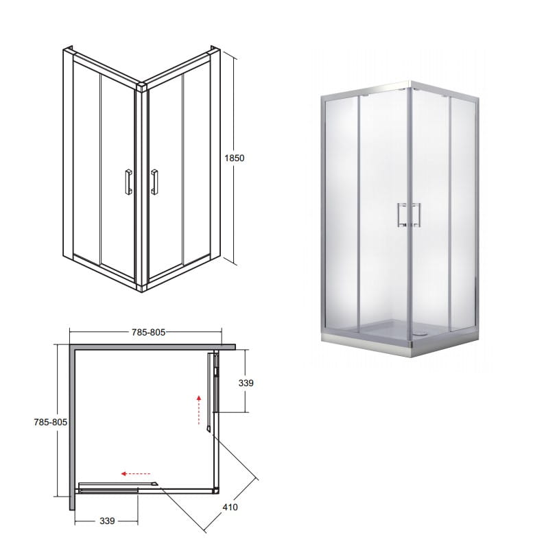 Kabina prysznicowa kwadratowa Besco Modern 80x80x185 szkło grafitowe - dodatkowo 5% RABATU na kod BESCO5