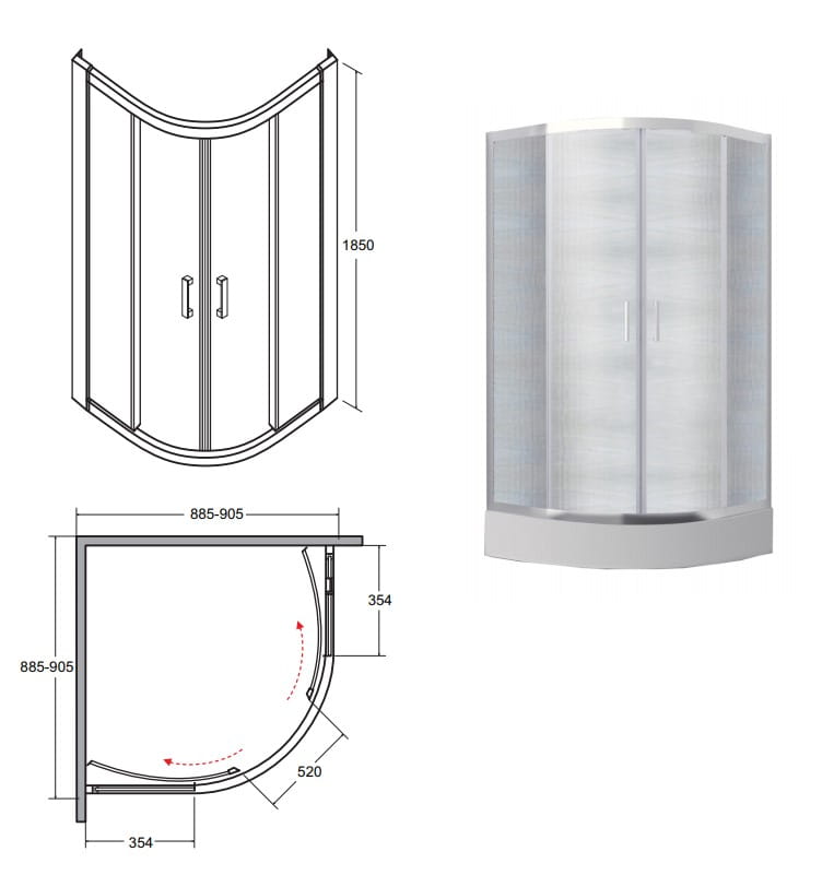 Kabina prysznicowa półokrągła Besco Modern 90x90x185 szkło przezroczyste - dodatkowo 5% RABATU na kod BESCO5