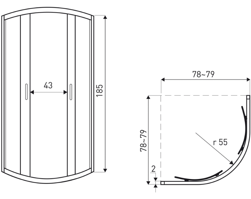 - Wymiar – 78-79 x 78-79 x 185 cm