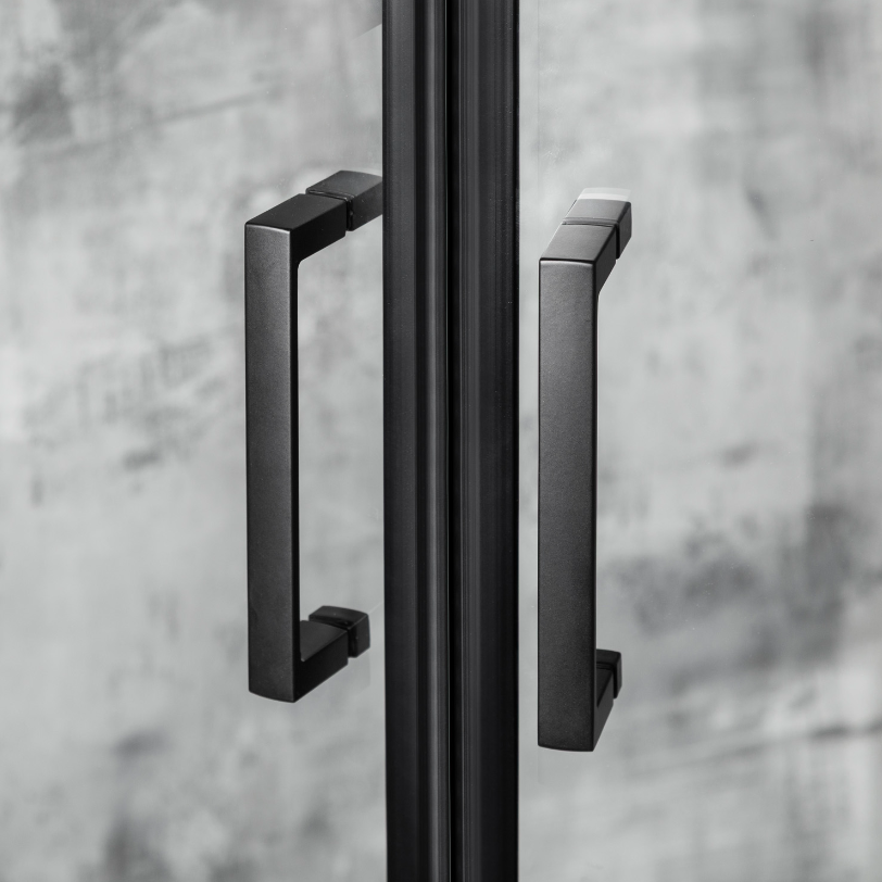 Czarna kabina prysznicowa Aruba zaprojektowana została z myślą o wygodzie użytkowania. Rozsuwane drzwi dwuskrzydłowe zapewniają szerokie i komfortowe wejście do prysznica, a jednocześnie nie zajmują dodatkowej przestrzeni w łazience. Jest to szczególnie ważne w przypadku mniejszych pomieszczeń.