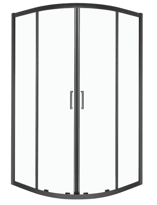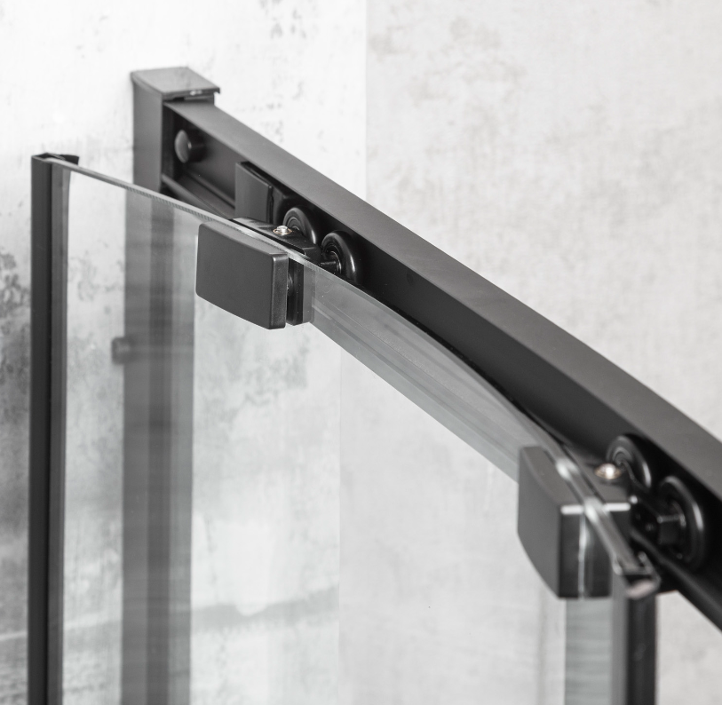 Zastosowanie drzwi przesuwnych dwuskrzydłowych pozwala na komfortowe otwieranie bez konieczności zachowania wolnej przestrzeni przed kabiną. Przezroczyste szkło hartowane 5 mm zapewnia odporność na uderzenia oraz bezpieczeństwo w codziennym użytkowaniu. Stabilność konstrukcji gwarantują aluminiowe profile z czarnym wykończeniem, odporne na wilgoć i korozję.