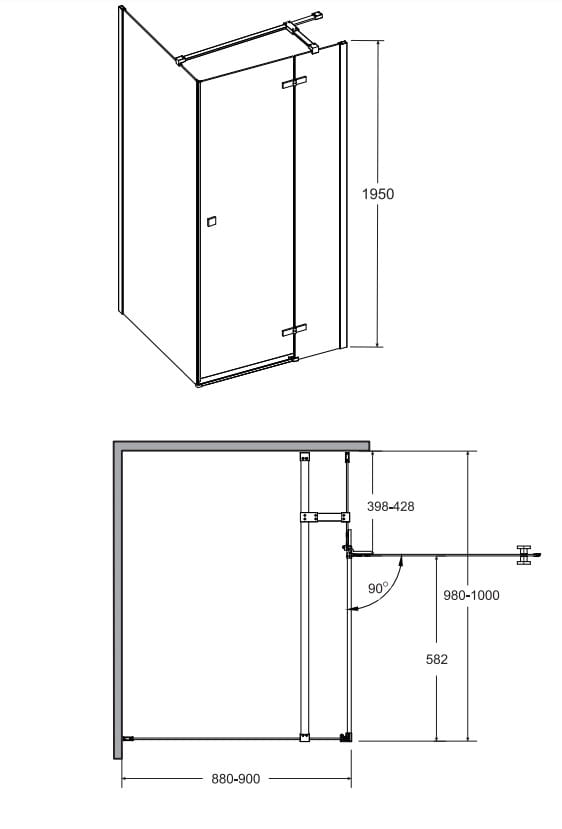 - Regulacja przyścienna niwelacja nierówności ściany: Pixa 100x90: 98-100 cm / 88-90 cm