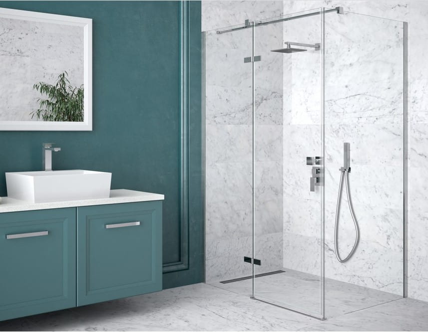 - Zawiasy unoszące drzwi, zlicowane z taflą szkła