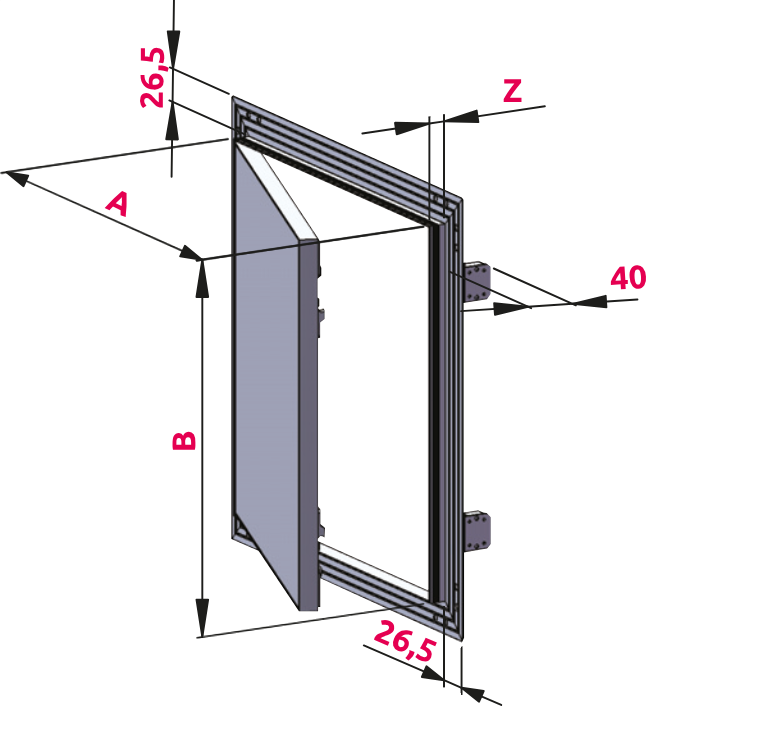 Wykonane z aluminiowych profili oraz wodoodpornej płyty klapy o grubości 12,5 mm, są wyposażone w zatrzaski sprężynowe typu mini-latch, dzięki którym otwieranie i zamykanie skrzydła odbywa się po jego dociśnięciu. Front klapy wykonanej z płyty kartonowo gipsowej, umożliwia pokrycie jej farbą, dzięki czemu otwór rewizyjny dyskretnie wpisuje się w estetykę pomieszczenia.