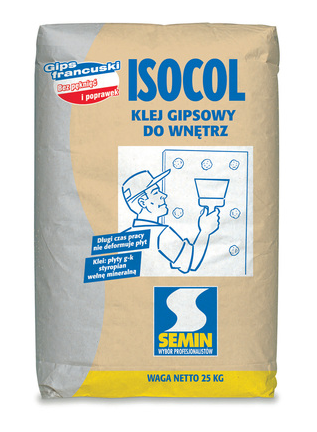 Klej gipsowy ISOCOL stosuje się do mocowania rożnego rodzaju płyt do wewnętrznych powierzchni ścian i sufitów wykonanych z cegły, betonu zwykłego, betonu komórkowego, drewna oraz stali (zabezpieczonej antykorozyjnie).