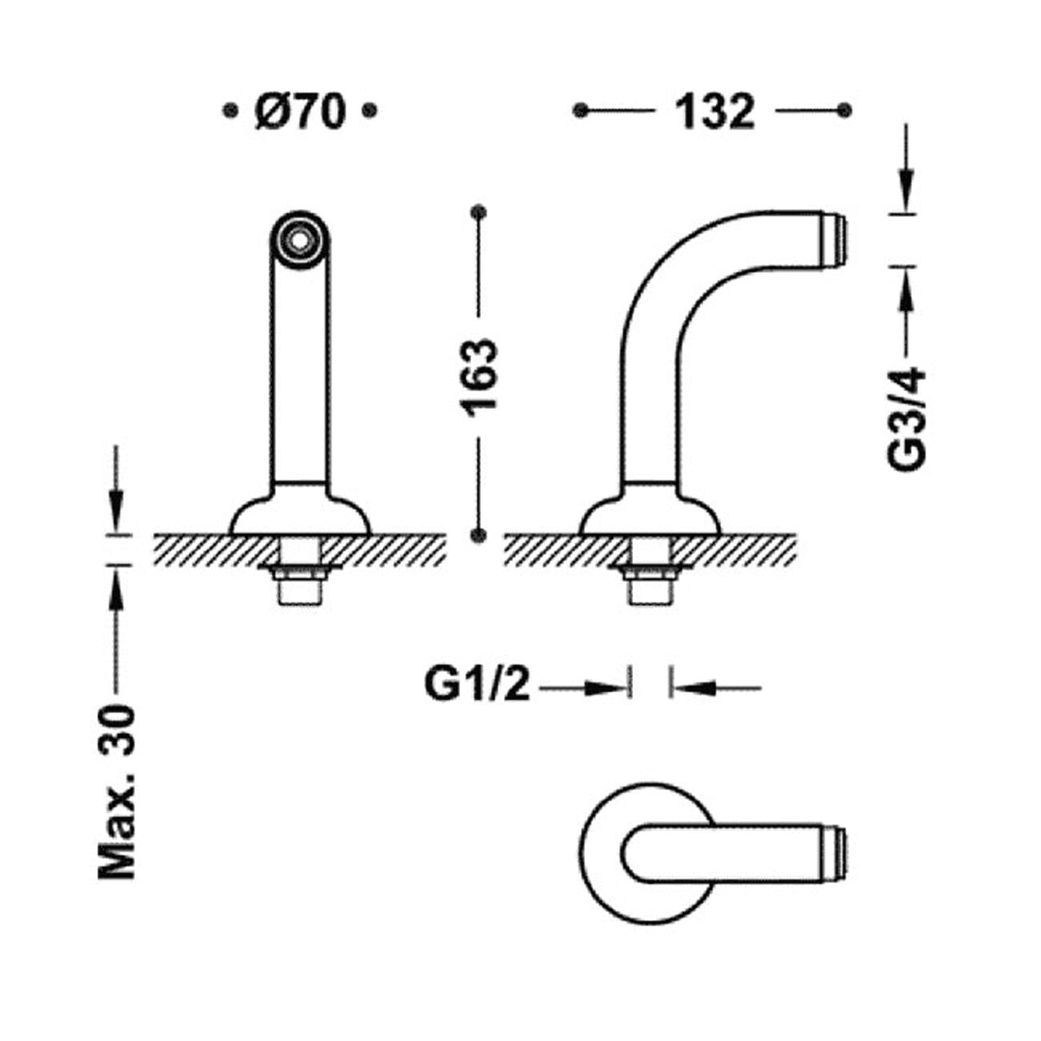 Kolankowe ujęcia wody do montażu na brzegu wanny do baterii wannowej Tres Clasic