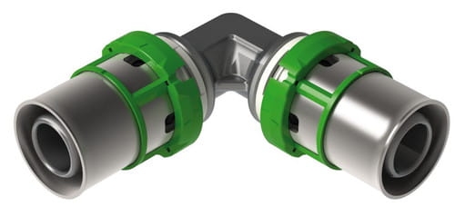 - kształtki MultiSkin – posiadają specjale nacięcia w pierścieniu by mieć pewność ze rura dociśnięta jest prawidłowo oraz plastikową nakładkę informującą o zaciśnięciu kształtki
