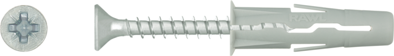 Rawlplug UNO-08+450 to uniwersalny kołek rozporowy z wkrętem rekomendowany do zakotwień w każdym podłożu, zarówno pełnym jak i otworowym.