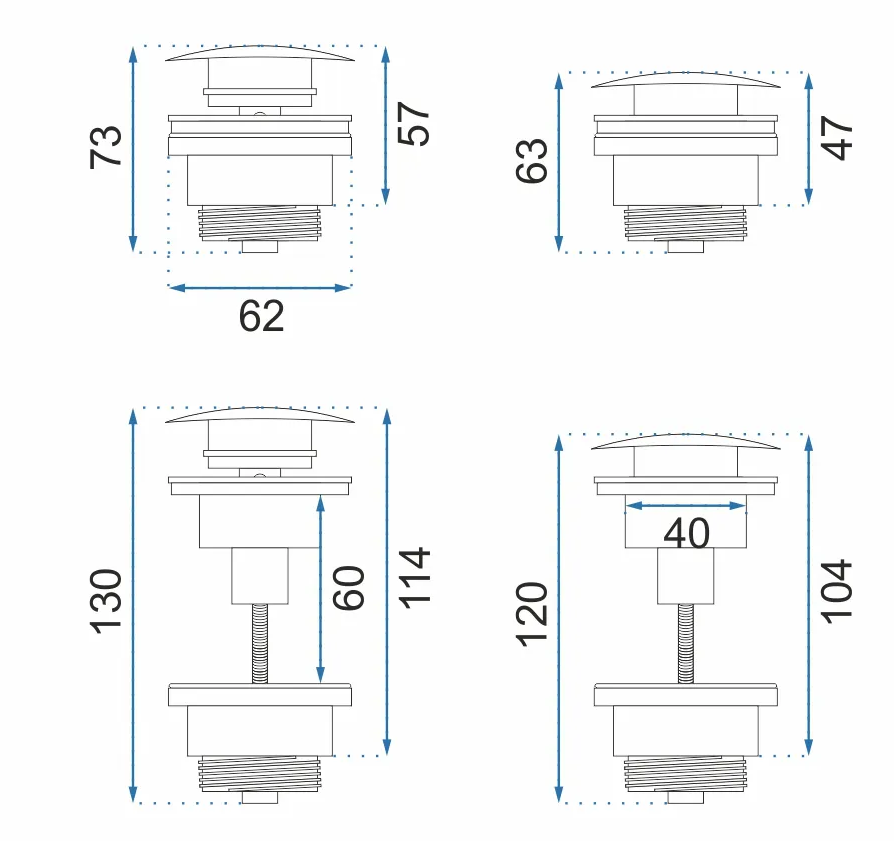- Wariant korka: z otworem przelewowym, bez otworu przelewowego