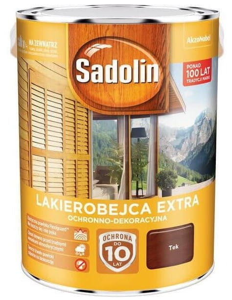 Lakierobejca do drewna Sadolin Extra tek 2,5 l chroni drewno przed niszczącym wpływem czynników atmosferycznych, w szczególności przed mrozem, wilgocią i szkodliwym promieniowaniem UV.
