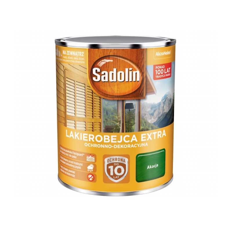 Sadolin Lakierobejca Extra to nowoczesna lakierobejca ochronno-dekoracyjna przeznaczona do malowania zewnętrznych powierzchni drewnianych. Polecana jest w szczególności do fasad, domków drewnianych, okien, drzwi, mebli ogrodowych, płotów