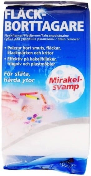 Bardzo skuteczne gąbki melaniny. Gąbka, która wymaga tylko wody - brak środków czyszczących. Doskonała do usuwania różnego rodzaju plam i zabrudzeń tj. ślady butów, past, kredki, markery itp. Gąbki można stosować na twardych powierzchniach tj. kafle. podłogi, ściany, meble z tworzywa sztucznego itp. Gąbka działa jak gumka, nie trzeć zmyt mocno bo można uszkodzić delikatne powierzchnie!