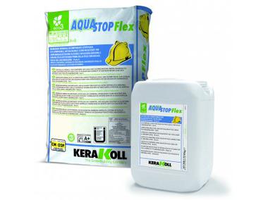Ekokompatybilna, certyfikowana, antyalkaliczna i odporna na chlor, dwuskładnikowa membrana mineralna do wysoce trwałego, przyczepnego i elastycznego uszczelniania podłoży przed układaniem okładzin z użyciem klejów. Zredukowana emisja CO₂, najniższa emisja lotnych związków organicznych, odpowiednia do recyklingu jako kruszywo. Aquastop Flex służy do uszczelniania balkonów, tarasów, basenów i kabin prysznicowych przed ułożeniem płytek ceramicznych, również “płytka na płytkę”, z pominięciem uciążliwej rozbiórki.