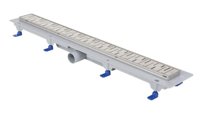 Odpływ podłogowy w rusztem z wzorem Fusion.
