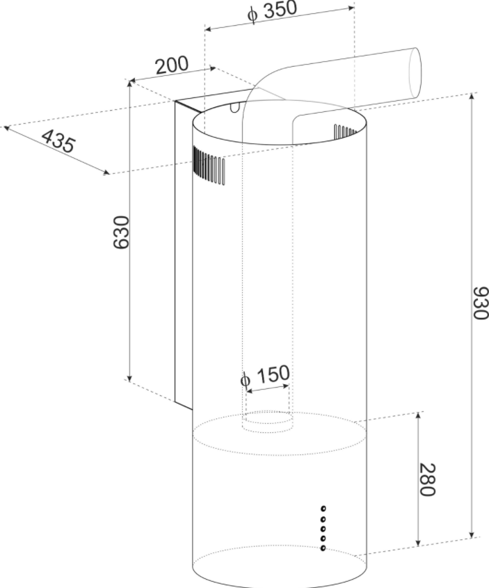 - Średnica rury wylotu powietrza 150 mm/ umiejscowienie: góra okapu