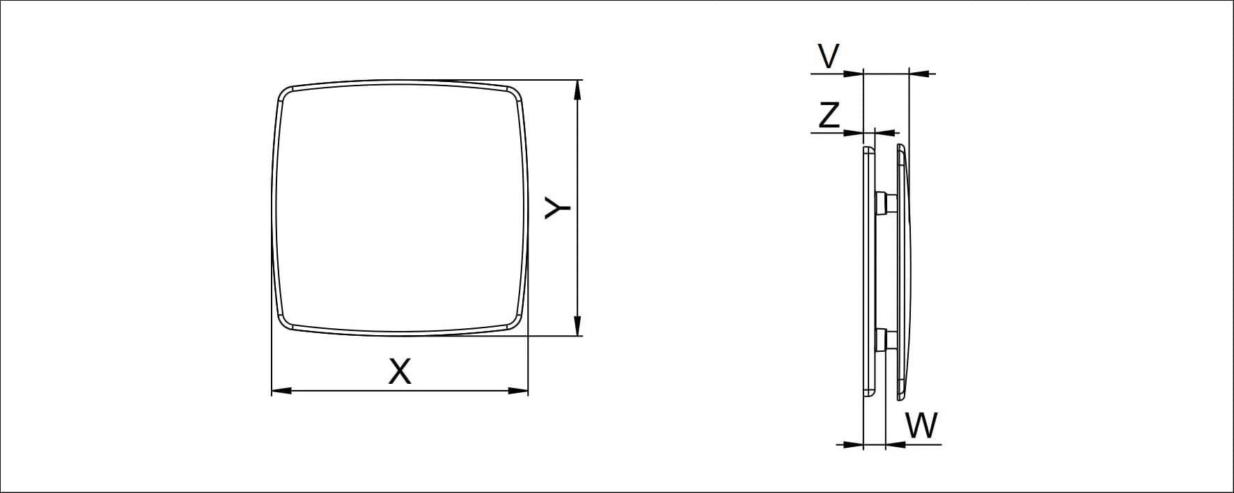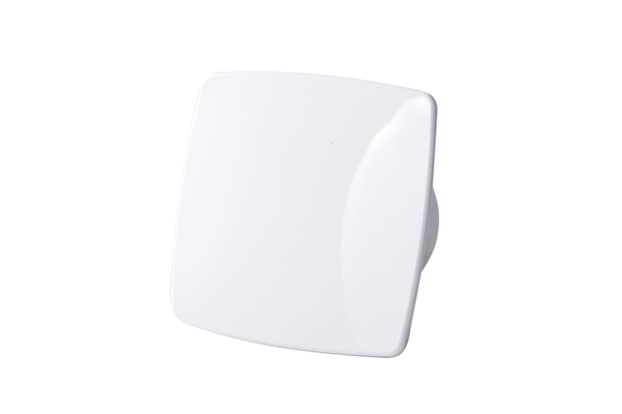 Ten model panelu na wentylator ma geometryczny, kwadratowy kształt o lekko zaokrąglonych rogach i został wykonany z tworzywa pomalowanego na biało.