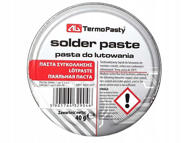 - Ułatwia lutowanie komponentów posiadających elementy wykonane z miedzi, srebra, cynku i niklu