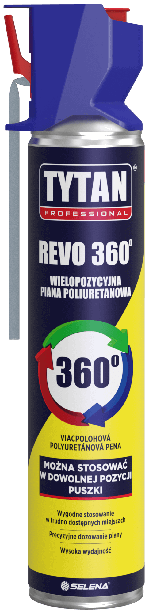 Tytan Professional REVO 360° to uniwersalna piana poliuretanowa, która doskonale sprawdza się we wszystkich rodzajach prac budowlanych. Dzięki innowacyjnemu aplikatorowi można ją stosować w dowolnej pozycji puszki, co zapewnia wygodną aplikację w trudno dostępnych miejscach, takich jak połączenia ścian i sufitów, wypełnianie szczelin w zagłębieniach i szachtach, oraz wielu innych miejscach o ograniczonej przestrzeni. Oba przyciski spustowe aplikatora zostały zaprojektowane tak, aby zapewniać precyzyjne i kontrolowane dozowanie piany.