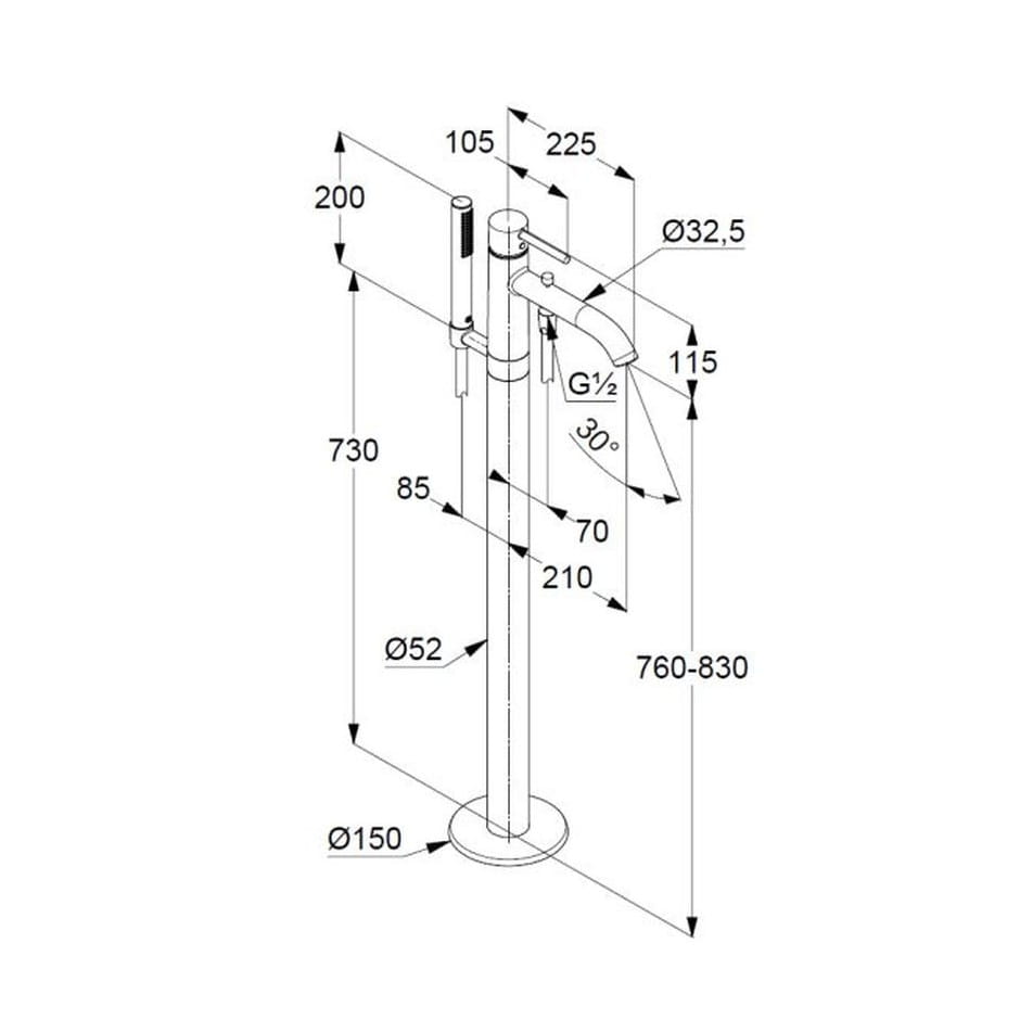 Bateria wannowo-natryskowa Kludi Bozz wolnostojąca. Ma zastosowanie w przypadku wanien zamontowanych na środku łazienki, z dala od ścian.