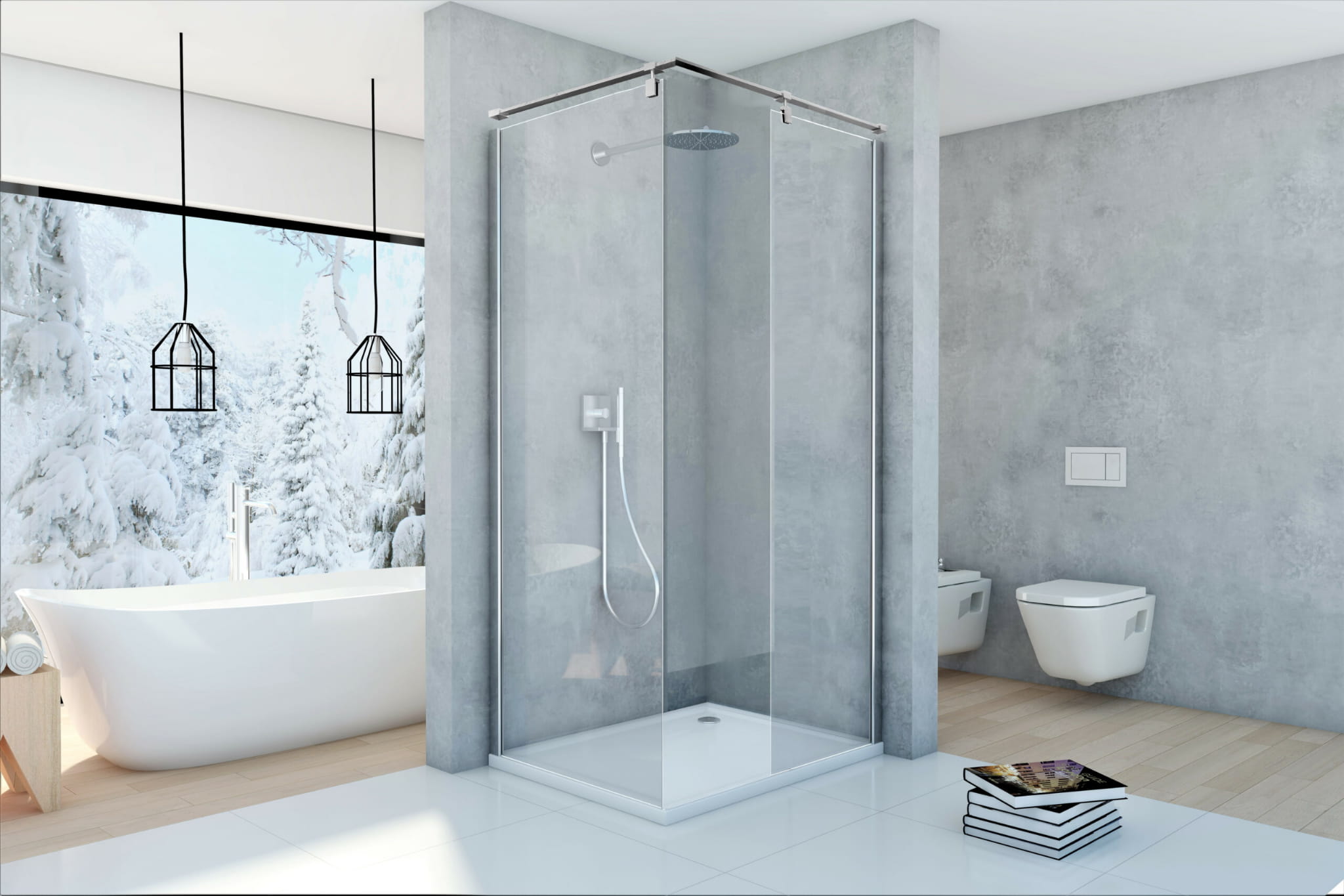 Składa się z dwóch ścianek prysznicowych o szerokości 120 cm i 90 cm