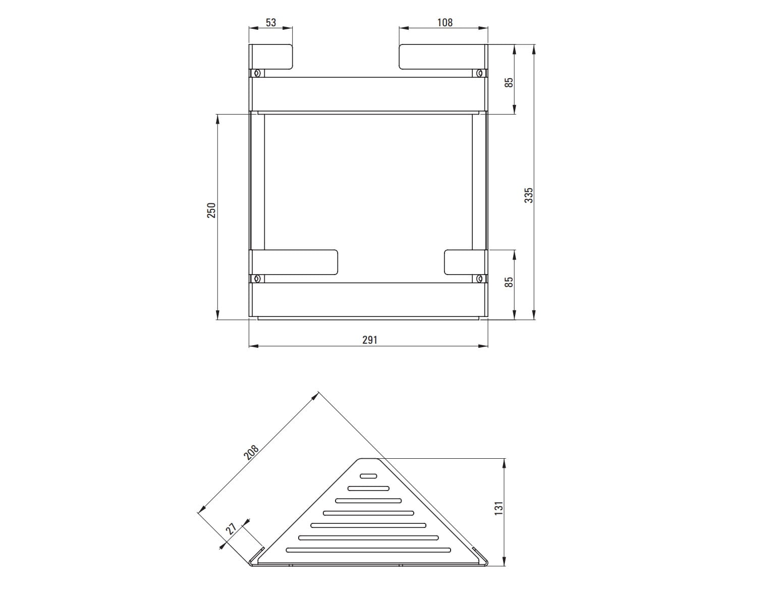 Podwójna, narożna półka z serii Mokko to praktyczne akcesorium na kosmetyki, montowane jest w rogu kabiny prysznicowej lub w okolicach wanny