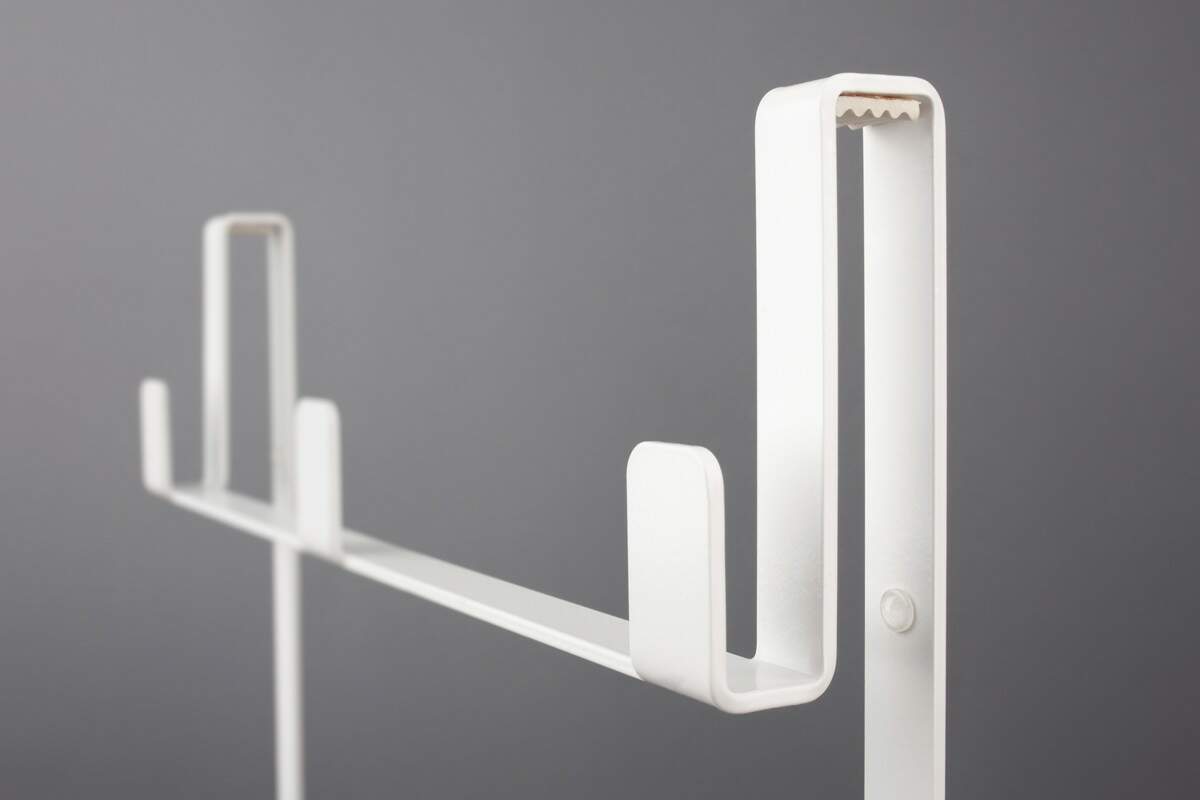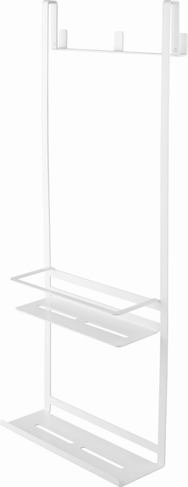 Półka na kabinę typu A składa się z dwóch ażurowych półek na kosmetyki oraz z trzech haczyków na ręczniki lub szlafrok