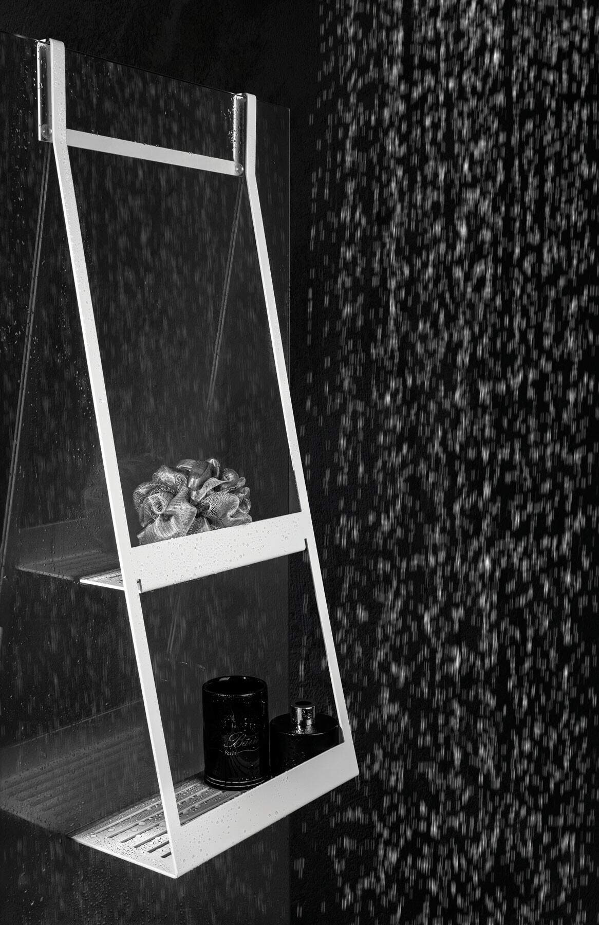 Półka na kabinę typu B o ciekawym wyglądzie i z dwoma ażurowymi półkami, pochodząca z wyróżnionej nagrodami kolekcji Mokko, to nowoczesne, minimalistyczne, a co za tym idzie proste i funkcjonalne akcesorium, które doskonale odnajdzie się w przestrzeniach współczesnych łazienek i salonów kąpielowych