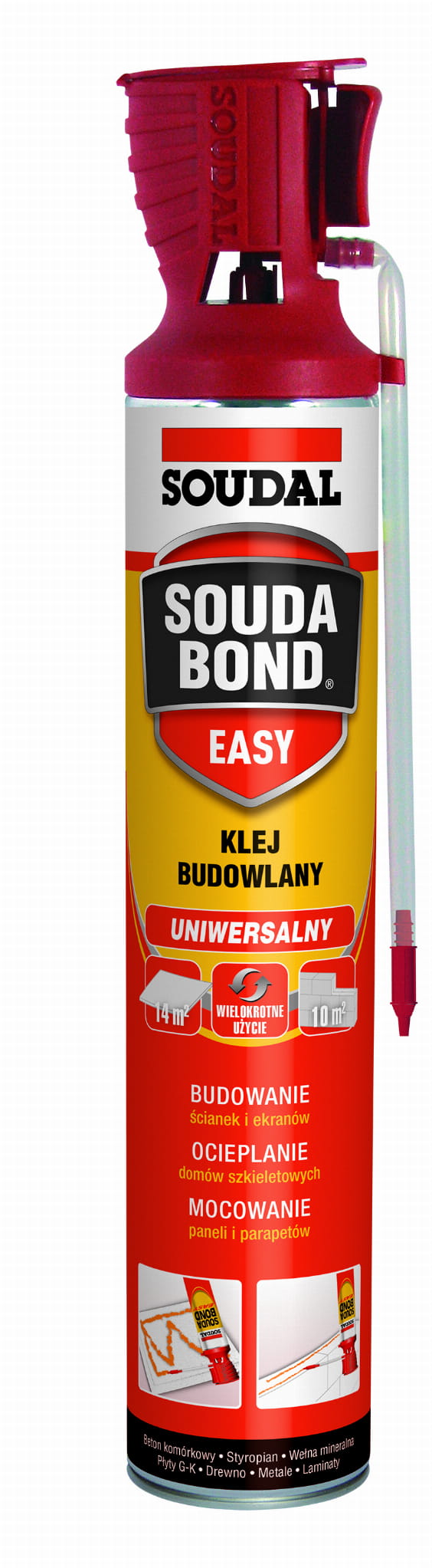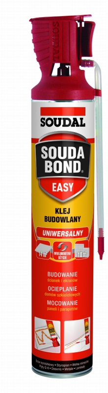 Poliuretanowy klej montażowy Soudabond Easy z aplikatorem wężykowym to produkt o bardzo szerokim zakresie zastosowań. Używany do prac instalatorskich i budowlanych, a także klejenia i uszczelniania przy pracach remontowo-wykończeniowych. Można go używać jako kleju do styropianu.