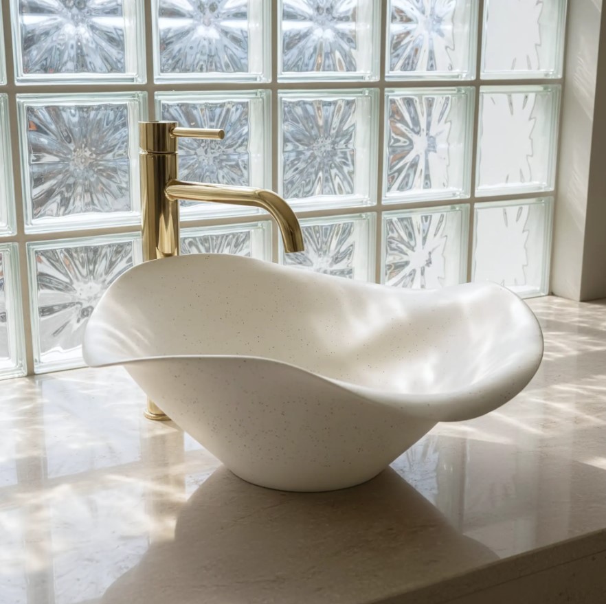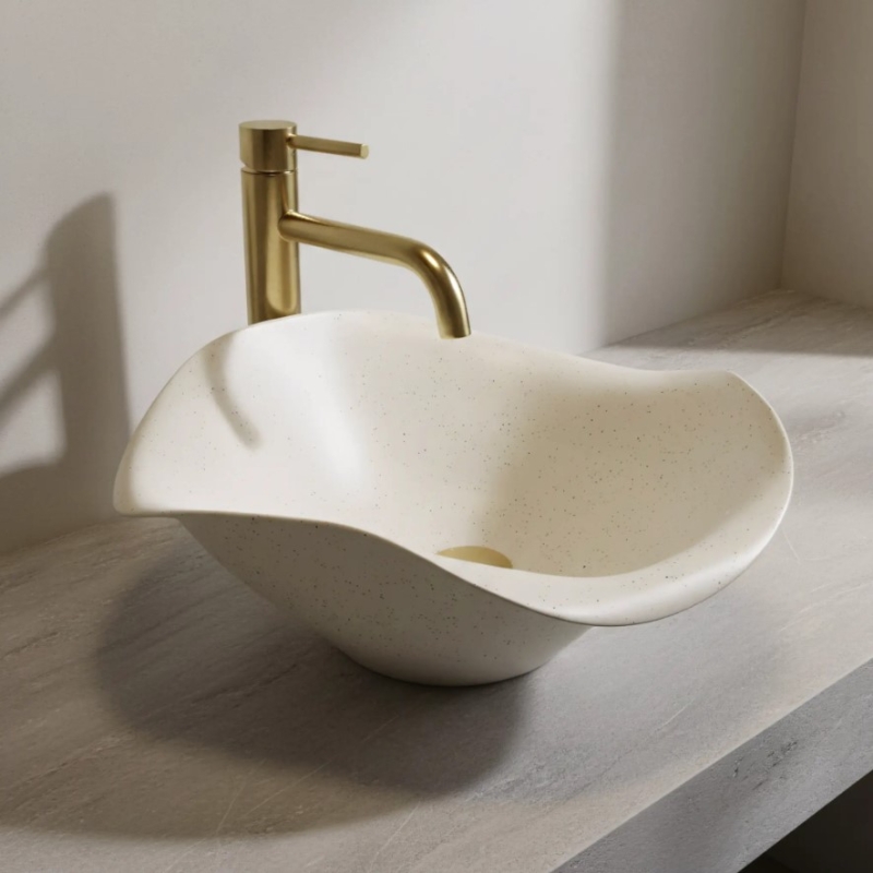 - Ręczne wykonanie (Hand Made) – proces produkcji odbywa się ręcznie, co nadaje umywalce indywidualny sznyt widoczny w niuansach linii i strukturze.