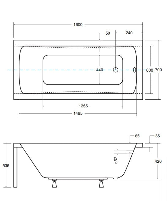 Prostokątna wanna wykonana z wysokiej jakości akrylu. Łatwa w montażu. Posiada właściwości antypoślizgowe oraz powłokę antybakteryjną. Zastosowany akryl utrzymuje długo ciepłą wodę wewnątrz wanny. Jest łatwa w utrzymaniu czystości. Ma stabilną konstrukcję i jest odporna na żółknięcie i zarysowania.