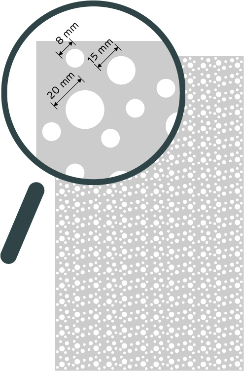 Dźwiękochłonna płyta gipsowo-kartonowa do okładzin bezspoinowych z perforacją okrągłą nieregularną na całej powierzchni płyty, do stosowania szczególnie w pomieszczeniach o dużej kubaturze i wysokich wymogach komfortu akustycznego. Fizelina akustyczna w kolorze czarnym.