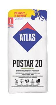 ATLAS POSTAR 20 produkowany jest w postaci suchej mieszanki cementu portlandzkiego, wypełniaczy kwarcowych oraz dodatków modyfikujących. Jest