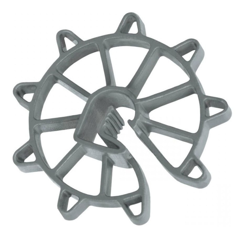 Gwiazdki pozwalają zachować stałą otulinę i swobodny przepływ betonu. Montaż elementu jest bardzo prosty – wystarczy wcisnąć dystans bezpośrednio na pręt szalunkowy.