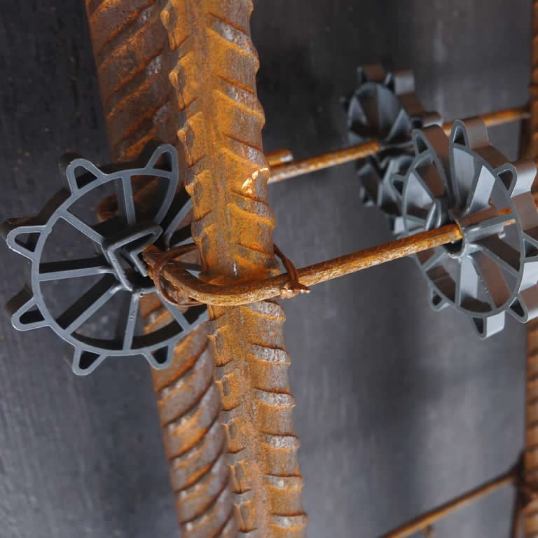 Przy pomocy podkładki ustalisz odległość prętów względem deskowania konstrukcji pionowych i poziomych. Dzięki podkładkom dystansowym obniżysz ryzyko kontaktu pręta z szalunkiem.