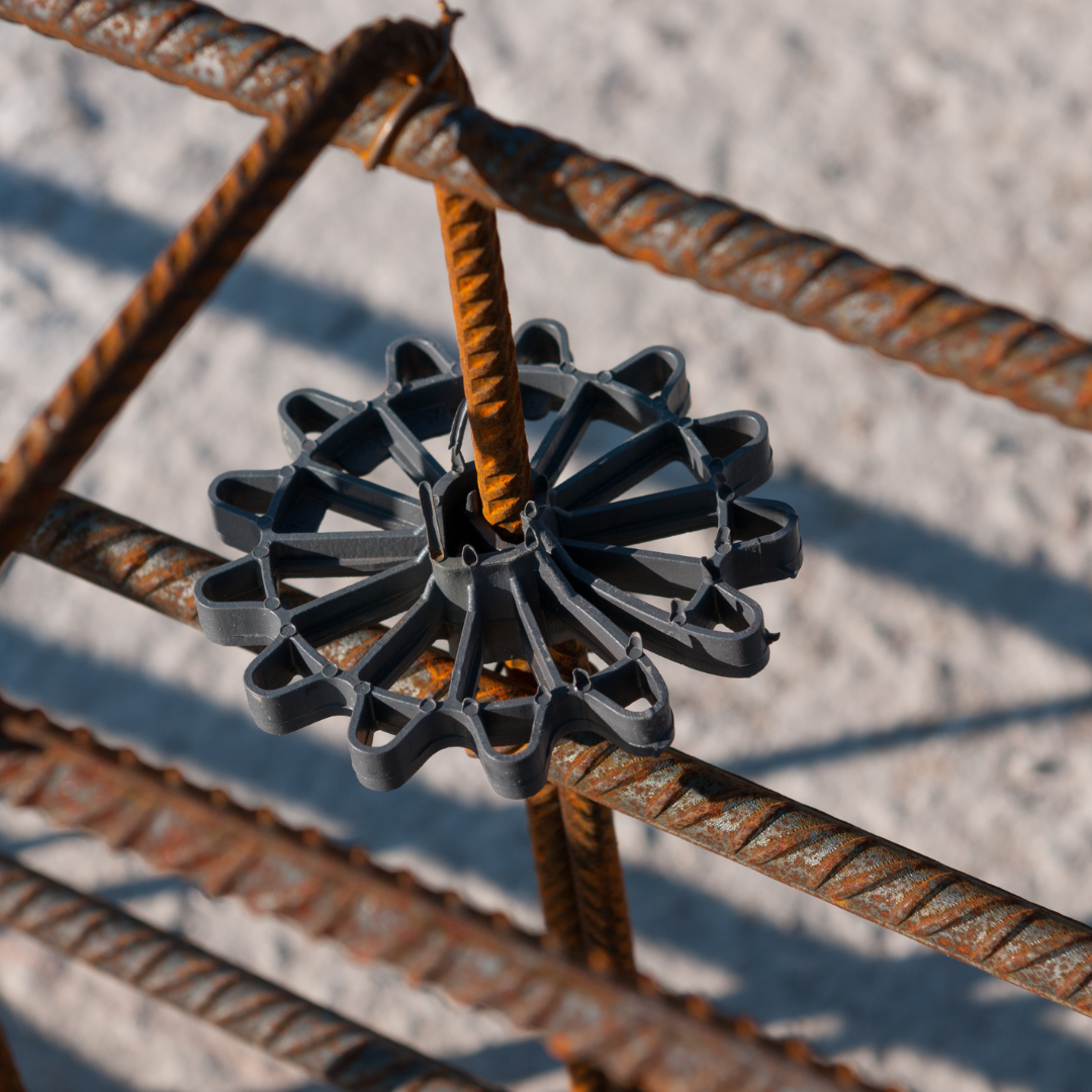 Przy pomocy podkładki ustalisz odległość prętów względem deskowania konstrukcji pionowych i poziomych. Dzięki podkładkom dystansowym obniżysz ryzyko kontaktu pręta z szalunkiem.