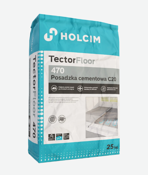 TectorFloor 470 Posadzka cementowa C20 jest podkładem podłogowym na bazie cementu, który ze względu na swoje parametry wytrzymałościowe można stosować bez okładziny jako posadzkę wierzchnią. Klasyfikowana zgodnie z normą PN-EN 13813 jest jako podkład podłogowy CT-C20-F4-A22.