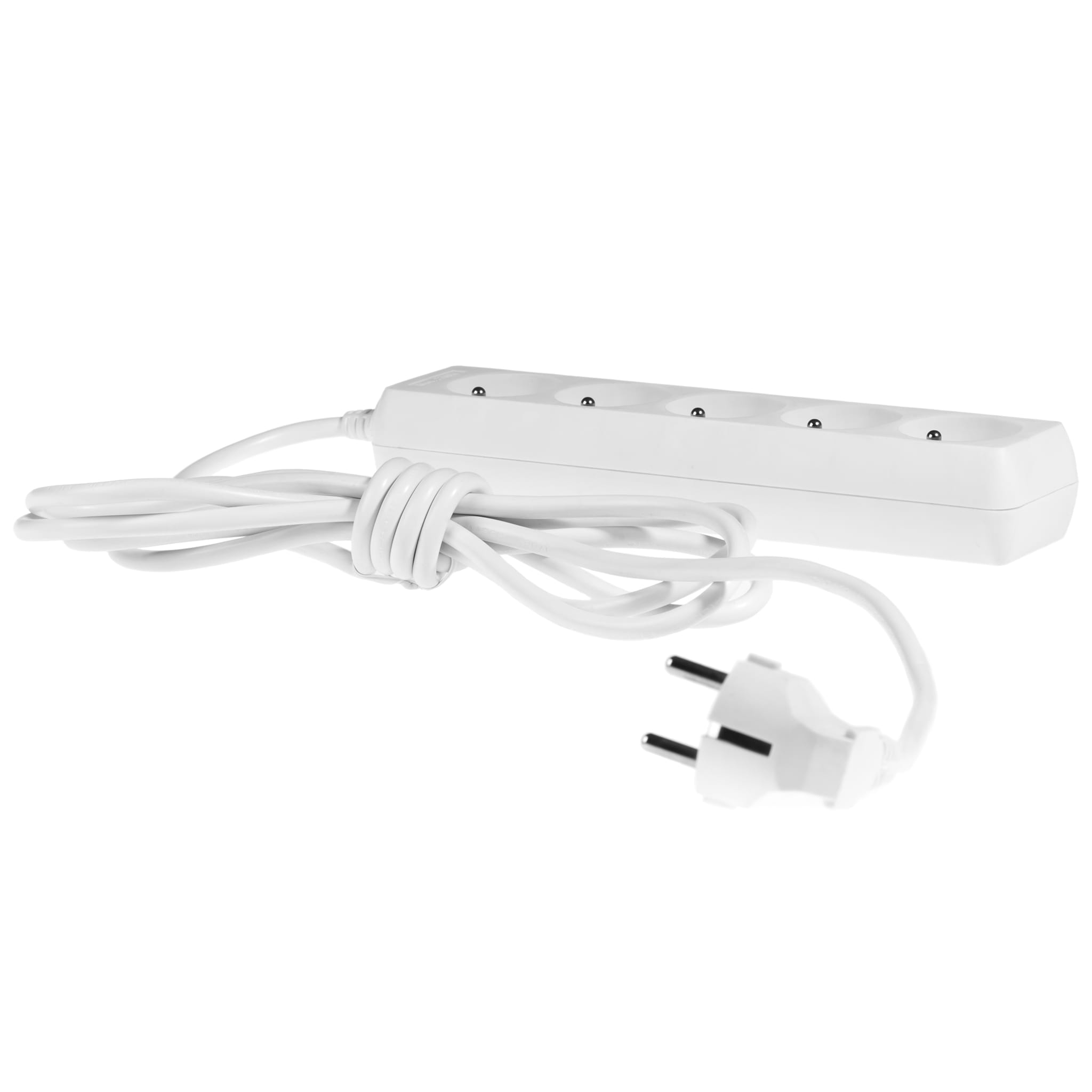 Uniwersalny, domowy przedłużacz stały 5 gniazdowy biały 3 m z uziemieniem.