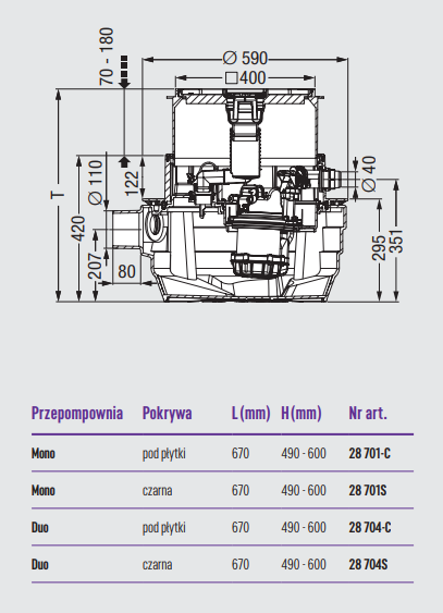Przepompownia do instalacji podposadzkowej. Wersja z jedną pompą.