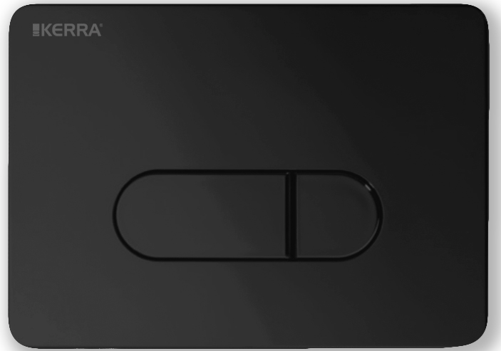 Przycisk spłukujący w kolorze czarnym do stelaża podtynkowego firmy Kerra.